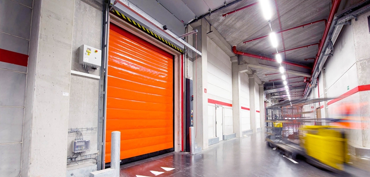 高温冷库又叫阴凉库、常温冷库可以选用标准款快速卷帘门,也可以选用带加厚门帘的拉链式快速卷帘门。速度快,密封好,保温隔温效果好。如下图: