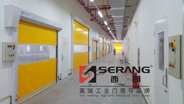 位于浙江省杭州市经济开发区内的某知名企业选用的SERANG西朗品牌工业快速门,安装调试进入收尾阶段。该批工业快速门用于工厂洁净车间,配套几十套快速门,并为部分工业快速门形成联锁及远程控制联动。