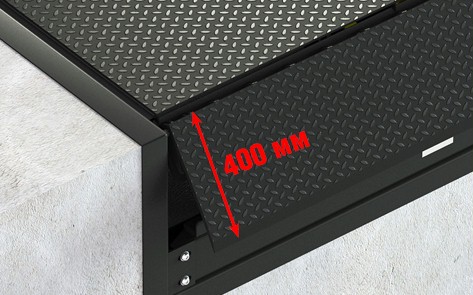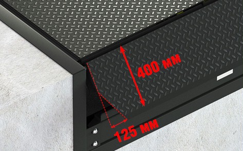 楔形斜坡。倒角35毫米。一体,没有区段。它在停放车辆是不完全在码头的中心的情况下使用,避免了对车辆的损坏,以及对具有不同宽度的汽车工作。